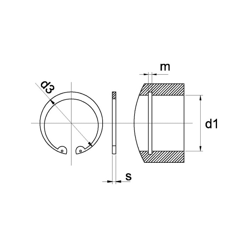 Išsamus aprašymasFiksavimo žiedas (vidinis fiksavimo žiedas) pagamintas iš spyruoklinio plieno, DIN 472.