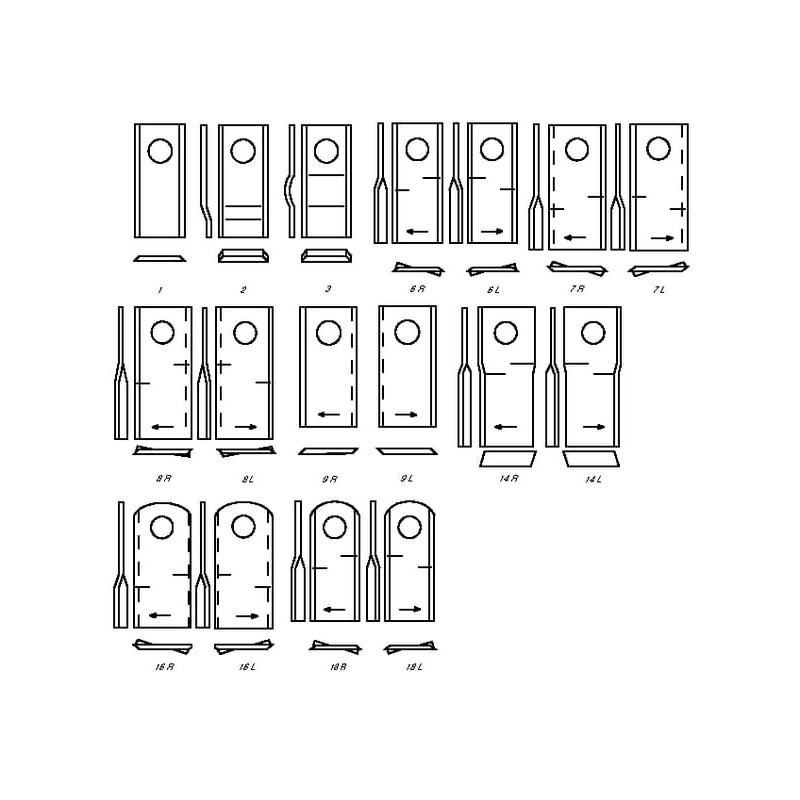 Vejapjovės peilis kairysis/dešinysis 108x48x3mm, kiaurymės skersmuo 21mm. Tinka Galfre/Marangon/New Holland 25 vnt. pakuotė 108D
