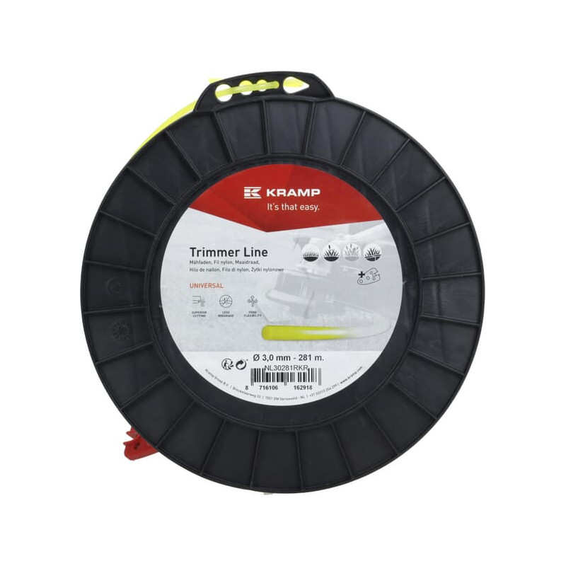 Žoliapjovės valo skersmuo 3 mm, 281 m, apvalus, geltonas, Kramp NL30281RKR