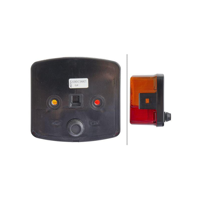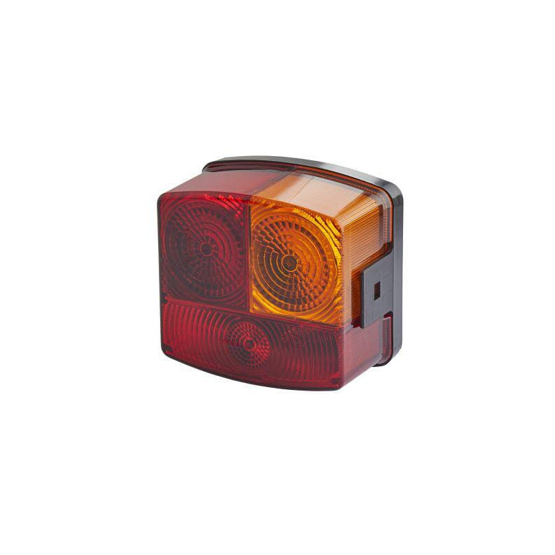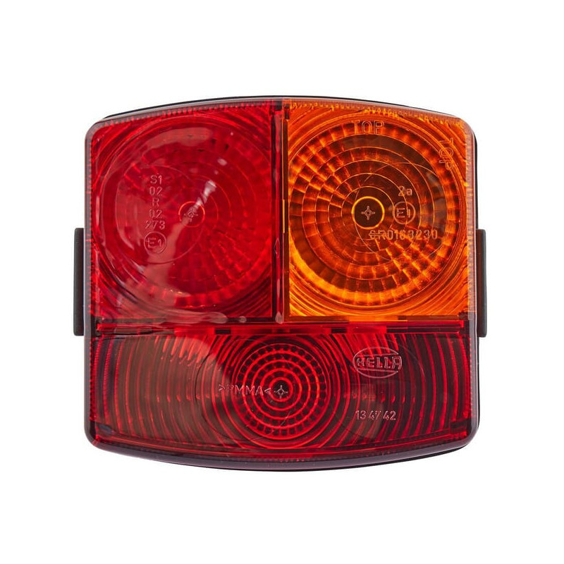 Galinis žibintas dešinysis, kvadratinis, 12V, gintaro/raudono spalvos, prisukamas, 95x54,5x90 mm, Hella 2SD002776241