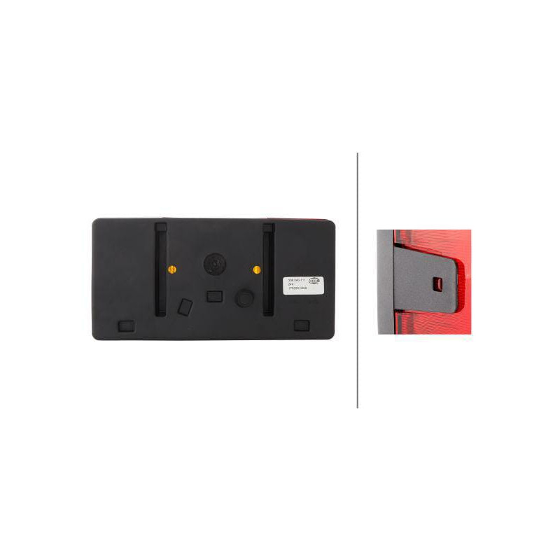Galinis žibintas kairysis, stačiakampis, 12/24V, raudonas/oranžinis/baltas, tvirtinamas varžtais, 210x66x108mm, Hella 2VP0060401