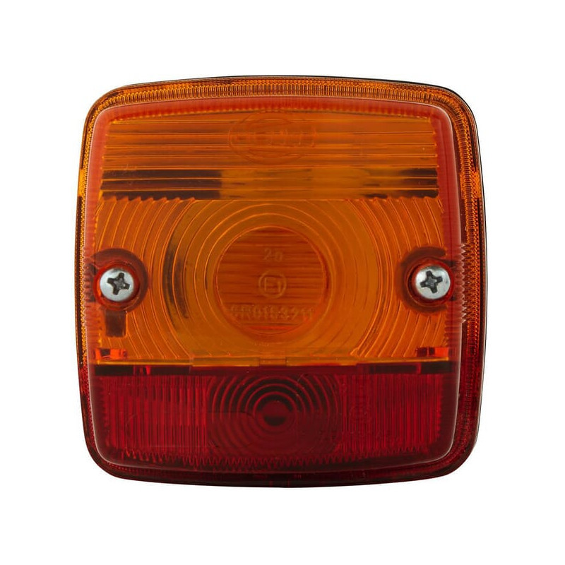 Galinis žibintas kvadratinis, 12/24V, raudonas/oranžinis, tvirtinamas varžtais, 84x51x84 mm, Hella 2SW003014131
