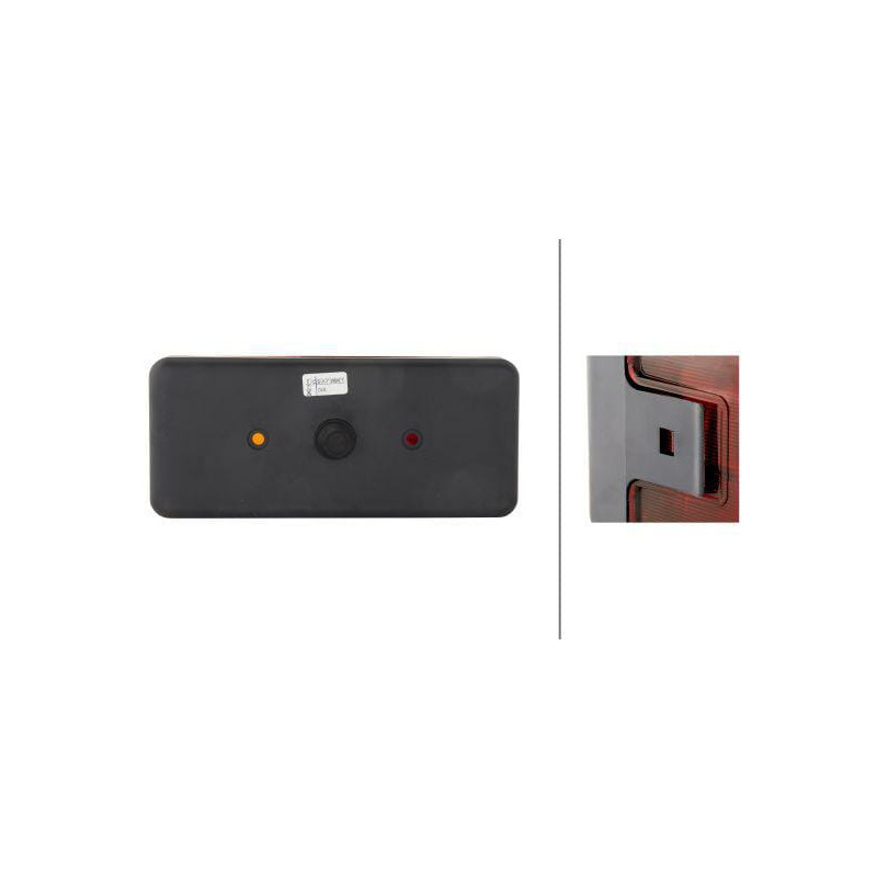 Galinis žibintas dešinysis, stačiakampis, 12/24V, raudonas/oranžinis, tvirtinamas varžtais, 170x62x75 mm, Hella 2SD002582021