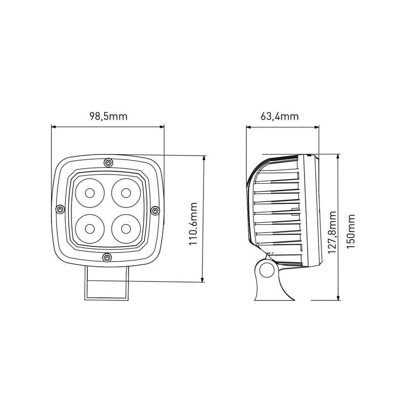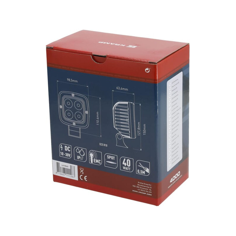 Darbinis šviesos diodas, 40W, 4000lm, kvadratinis, 10-30V, 110x63,4x98,5mm, taškinis spindulys, Kramp LA10045