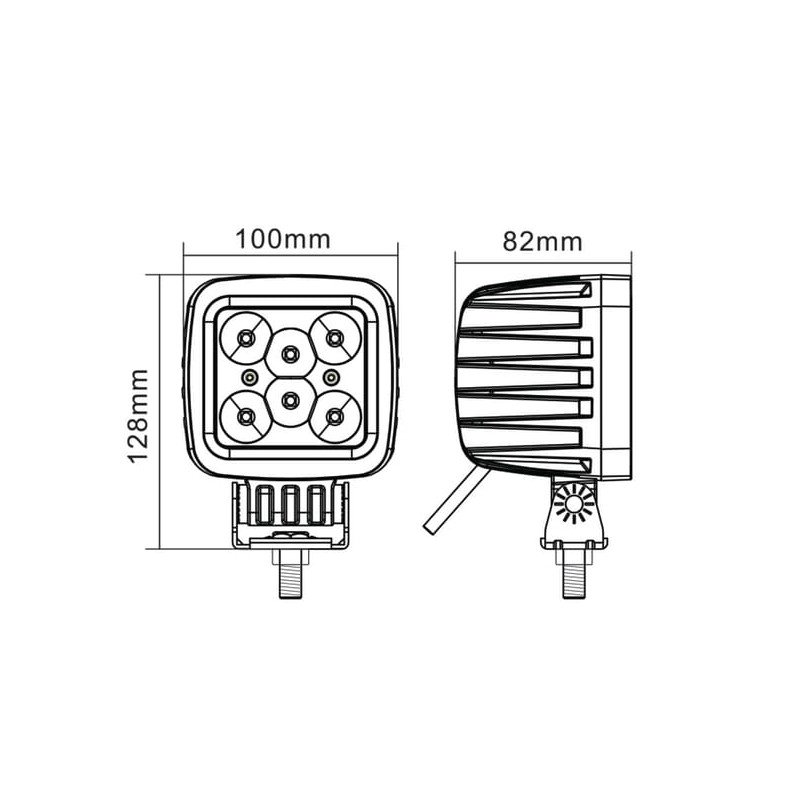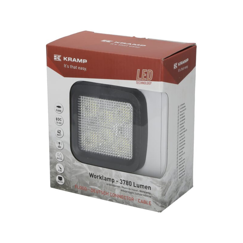 Darbinis šviesos diodas, 42W, 3780lm, kvadratinis, 10/30V, 128x82x100mm, potvynis, 6 šviesos diodai, Kramp LA10028