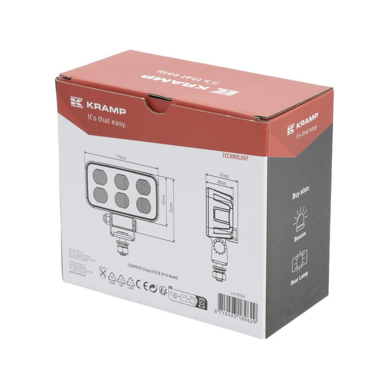 Darbinis šviesos diodas, 60W, 4630lm, stačiakampis, 12/24V, baltas, 115x65x47mm Deutsch kištukas, Flood, 12LED LA10834