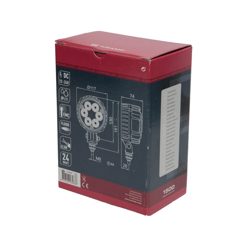 Darbinis šviesos diodas, 24 W, 1500 lm, apvalus, 10/30 V, Ø 117 mm, potvynis, 6 LED, Kramp LA10009