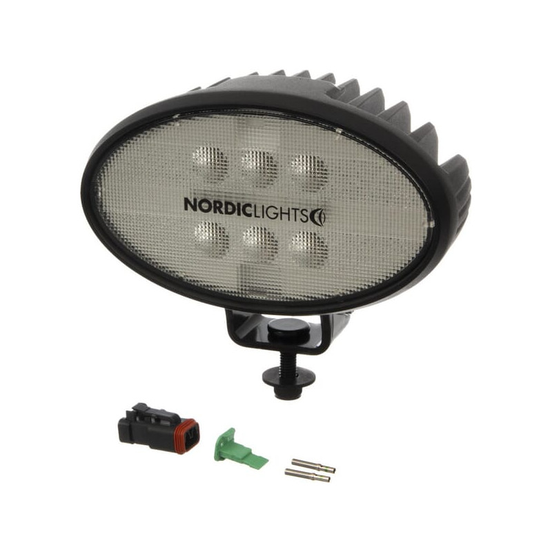 Darbinis šviesos diodas, 39 W, 3600 lm, ovalus, 12/24 V, baltas, užsukamas, 160x95x118 mm, Deutsch 2-pin, Wide Flood, 6 LED, SAT