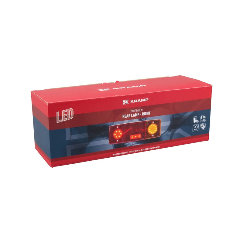 Daugiafunkcis galinis dešinės šviesos diodas, stačiakampis, 12-24V, 287,5x100,5x65 mm, 5 kontaktų, Kramp LA40018