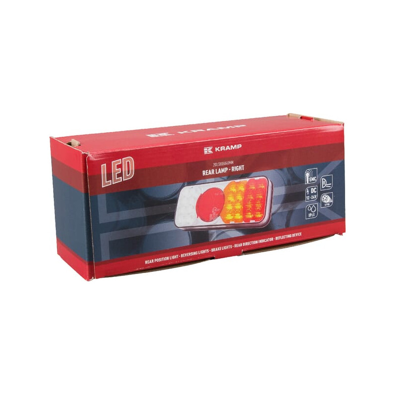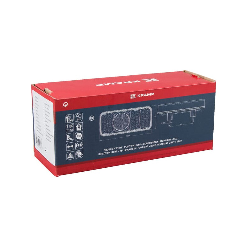 Daugiafunkcinis galinis dešinės šviesos diodas, stačiakampis, 12-24V, 200,5x85x40mm, 5 kontaktų, Kramp LA40032