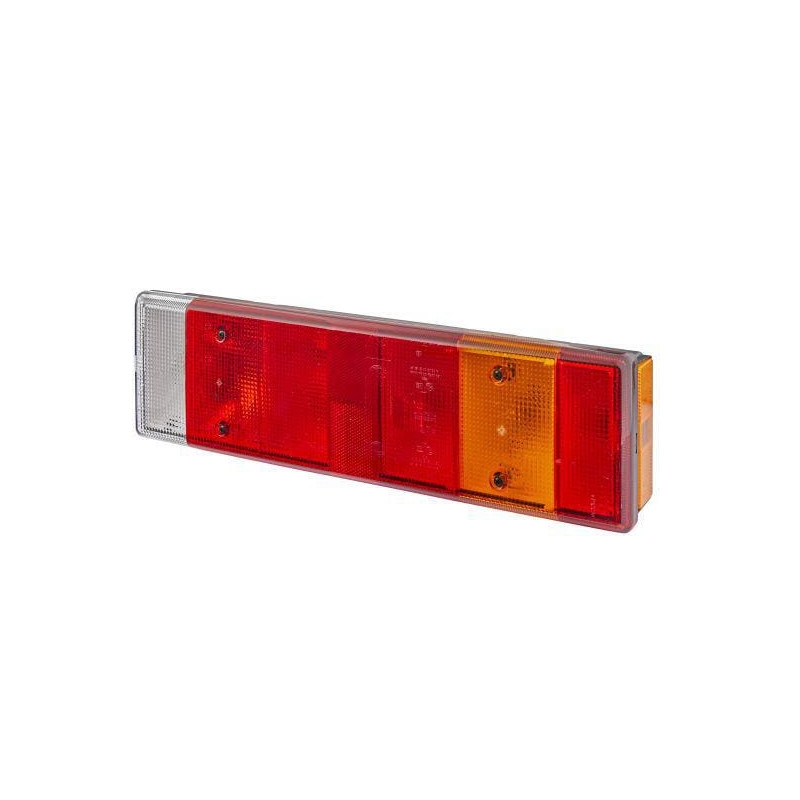 Stačiakampio formos galinis žibintas, 24 V, skaidrus/gintarinis/raudonas, užsukamas, 476x83x131mm, 8 kontaktų, Hella 2VD00732313