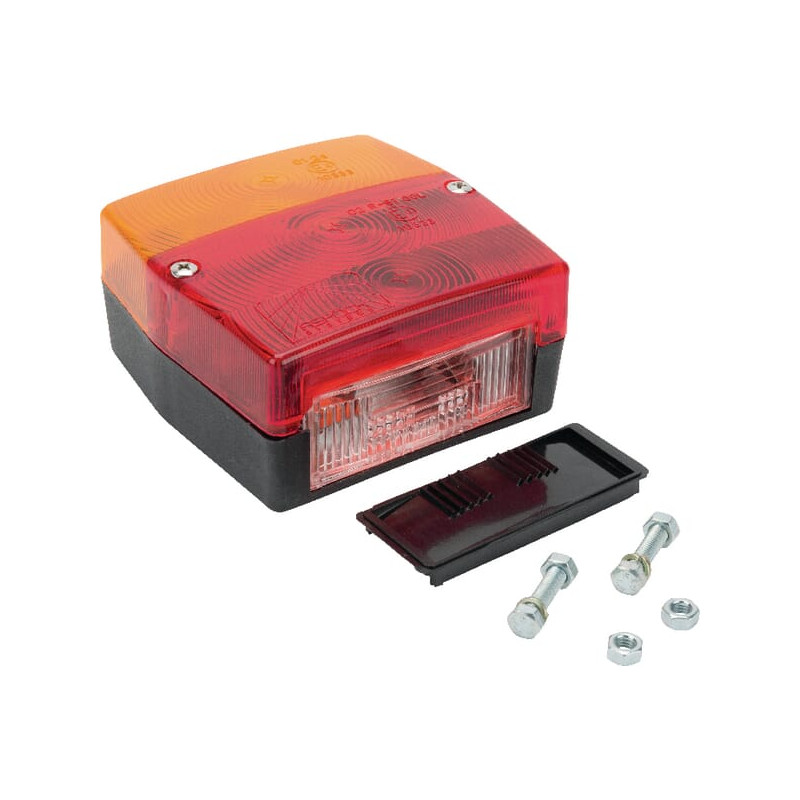 Kvadratinis galinis žibintas, 12V, raudonas/gintaras, prisukamas, Minipoint by Aspöck 230300037