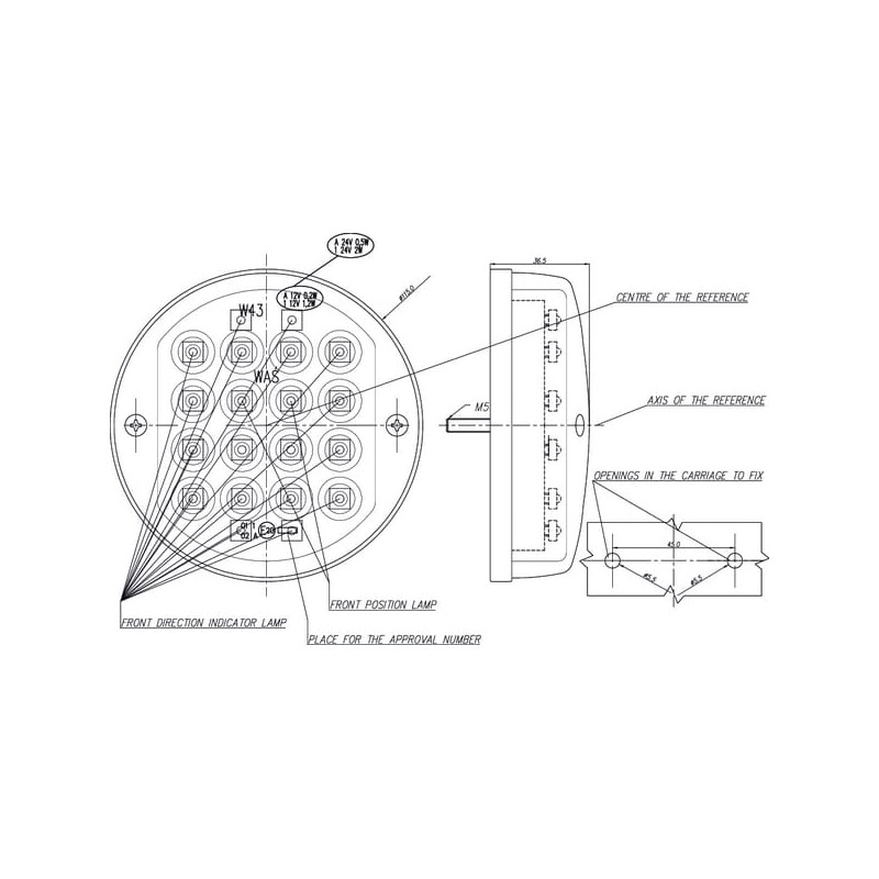 Daugiafunkcinis priekinis šviesos diodas, apvalus, 12 V, skaidrus, užsukamas, Ø 115 mm, Waś 1400682000