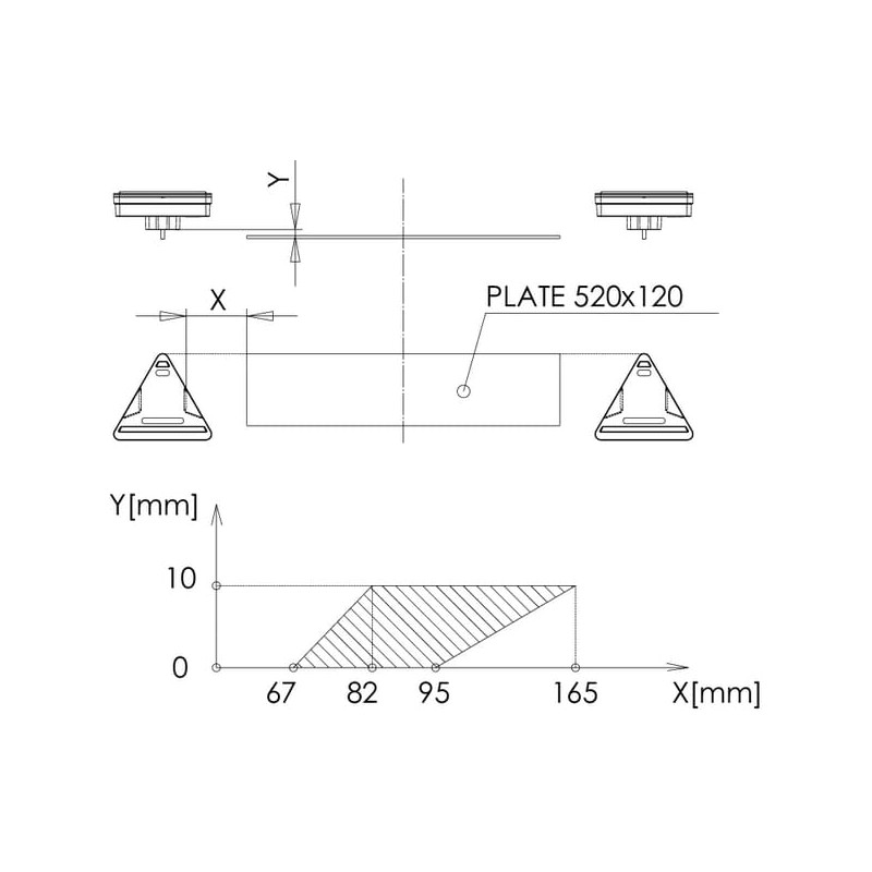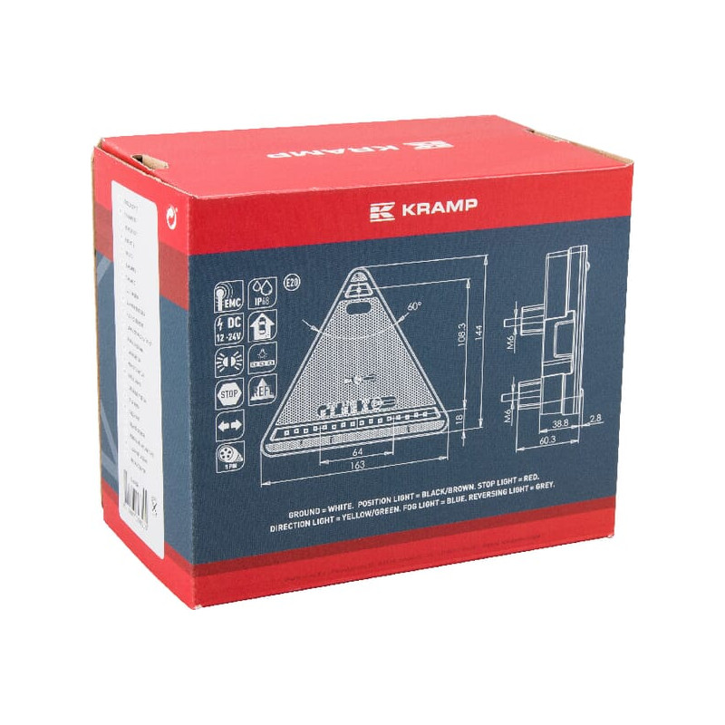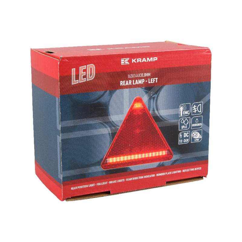 Daugiafunkcinis galinis KŠ žibintas LED, trikampis, 12-24V, 163x144x38.8mm, 5 kontaktų, Kramp LA40028