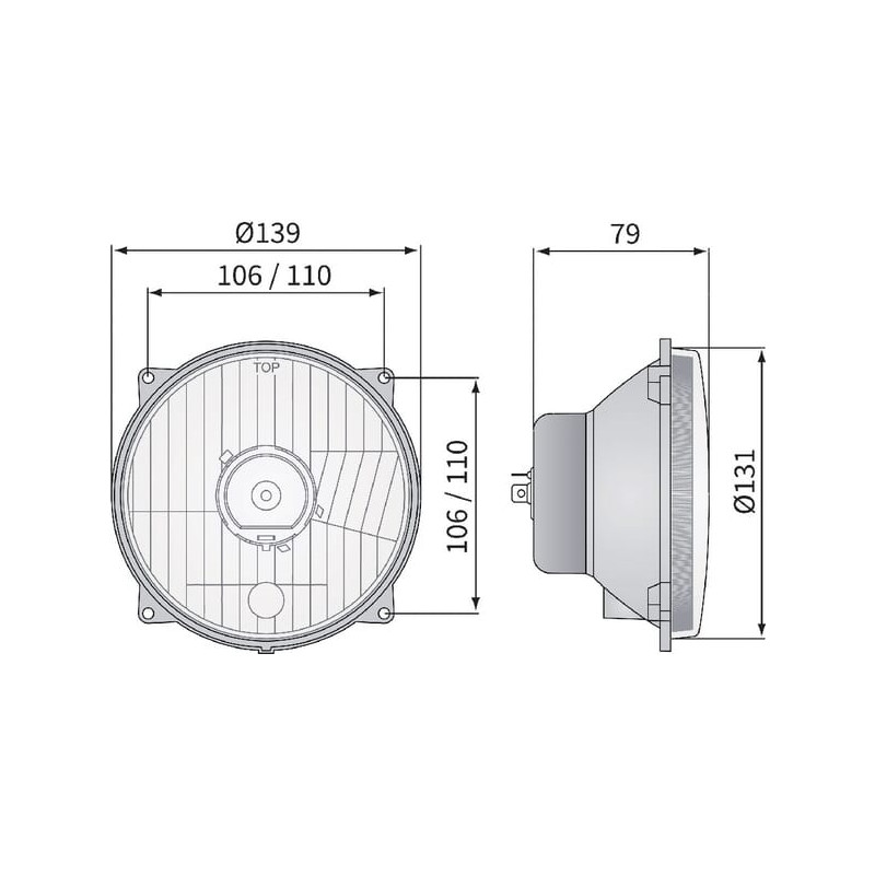 Priekinis žibintas halogeninis, apvalus, 12/24V, 139x139mm, Kramp LA80151