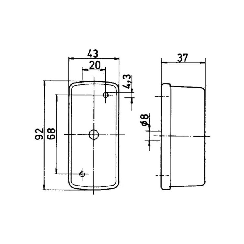 Stačiakampio formos žymeklio lemputė, 12/24V, raudona/balta, užsukamas, 92x37x43mm, Jokon 120007000