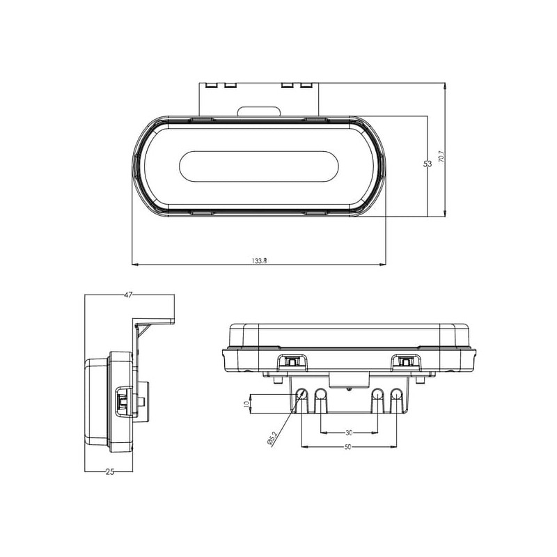 Žymeklis LED, raudonas, stačiakampis, 12-24V, 133,8x53x25mm "SAFETY LINE", Kramp logotipas LA30171