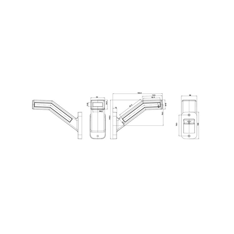 Gabaritinis žibintas LH LED, 12-24V, 184,9x58x145,5 mm, dinaminis posūkio rodiklis, Kramp LA30164INDX