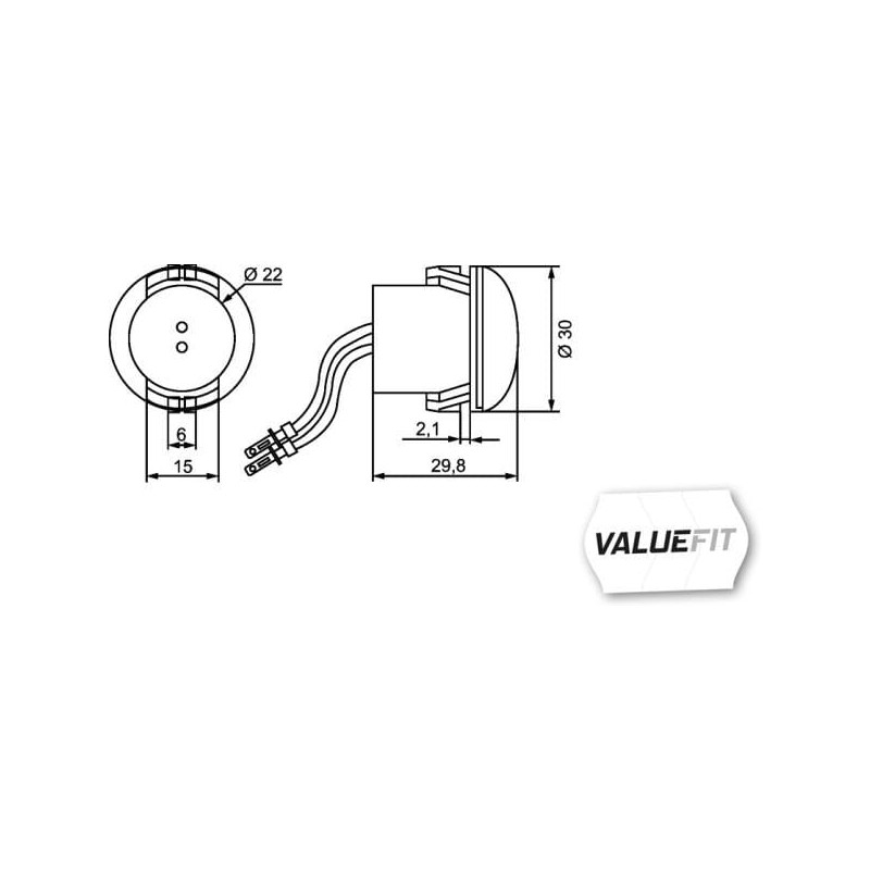 Šviesos diodas, apvalus, 9/33 V, gintaro spalvos, užsukamas, 30x29,8x30 mm, 1 LED, Hella ValueFit 2PS357011001
