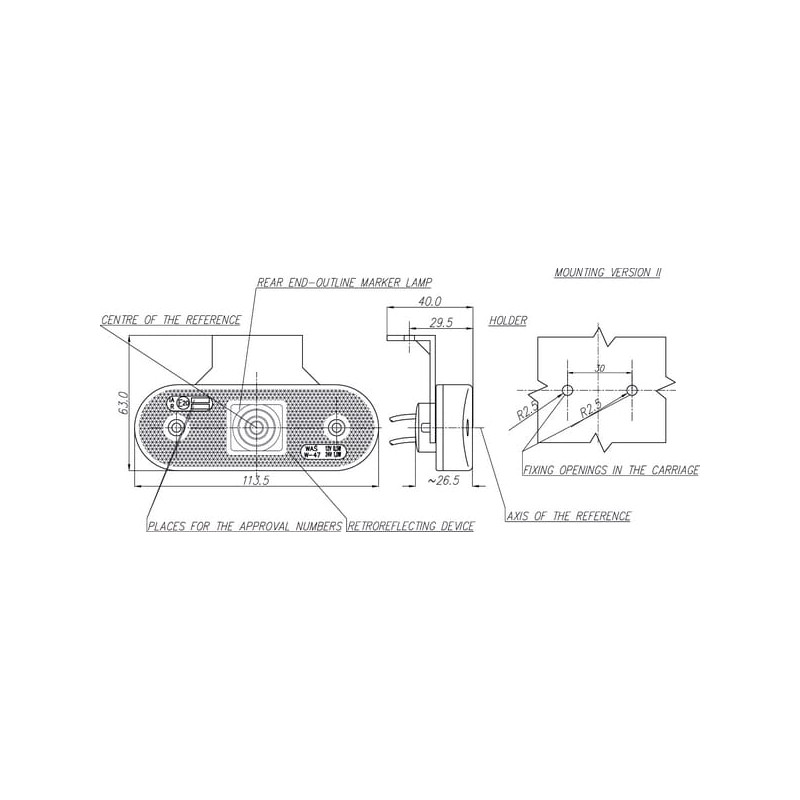 Šviesos diodas, stačiakampis, 12/24 V, raudonas, užsukamas, 113x63 mm, Waś 1400690533