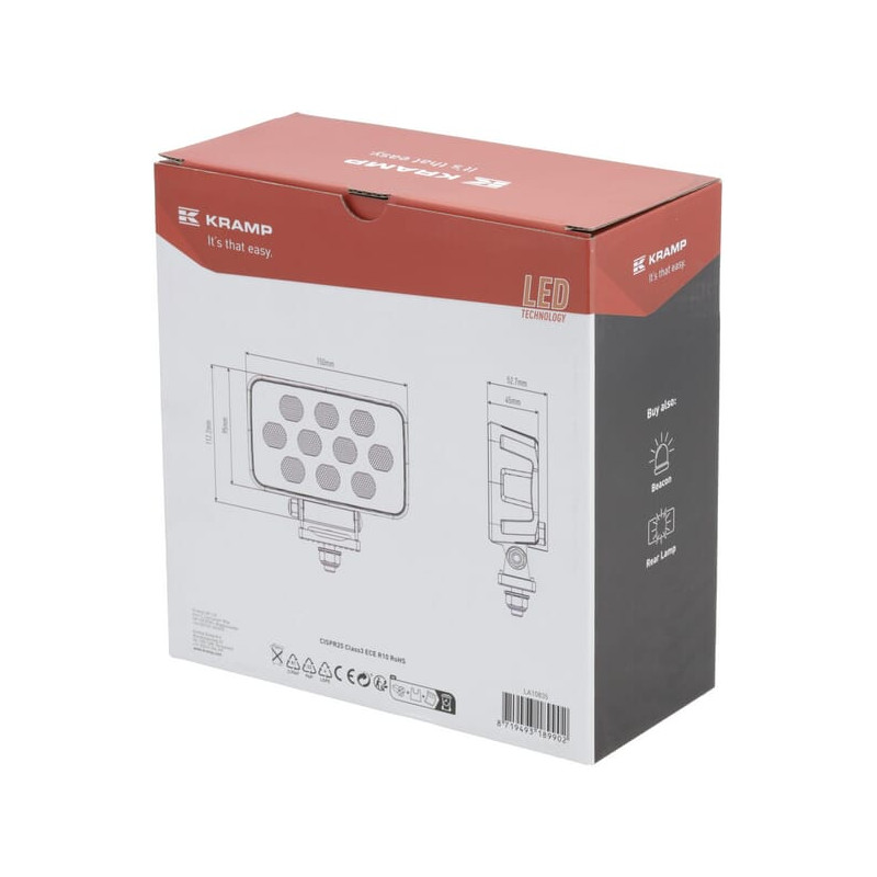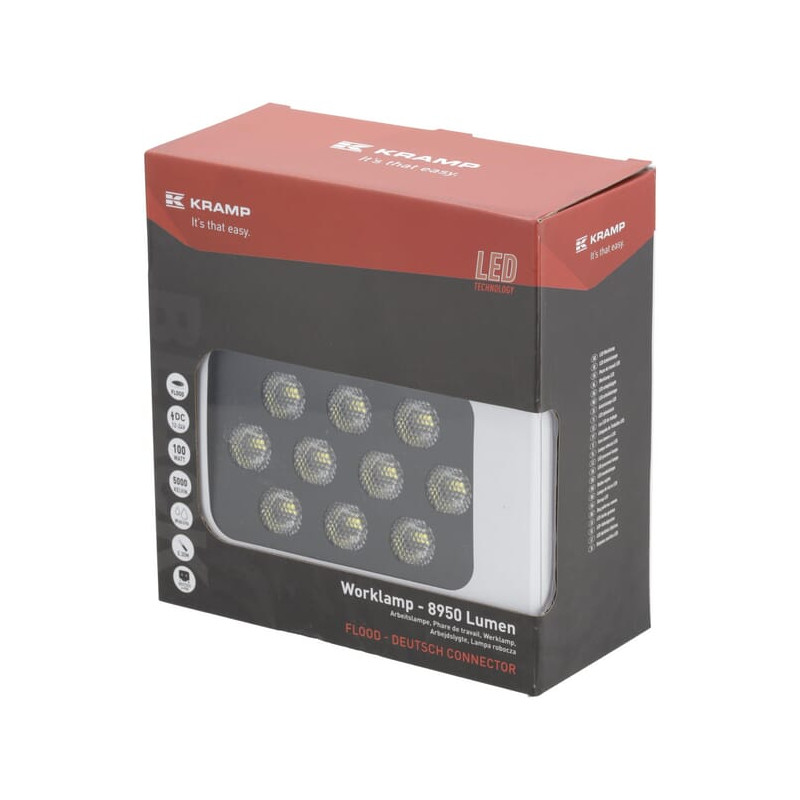 Darbinis šviesos diodas, 100 W, 8950 lm, stačiakampis, 12/24V, baltas, 150x112x52,7 mm Deutsch kištukas, Flood, 20LED LA10835