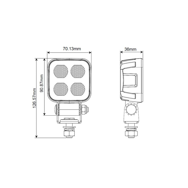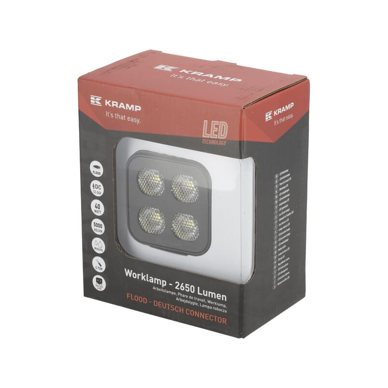 Darbinis šviesos diodas, 40 W, 2650 lm, kvadratinis, 12/24 V, baltas, 70,1x126,6x49,7 mm Deutsch kištukas, Flood, 8LED LA10832