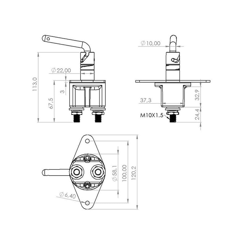 Papildoma informacija Maksimali apkrova 2500A (24V-10 sek.) 2 x M10