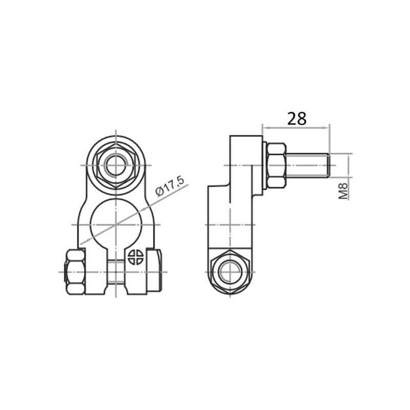 Akumuliatoriaus gnybtas su sriegiu M8 ilgis 28, teigiamas BA5001