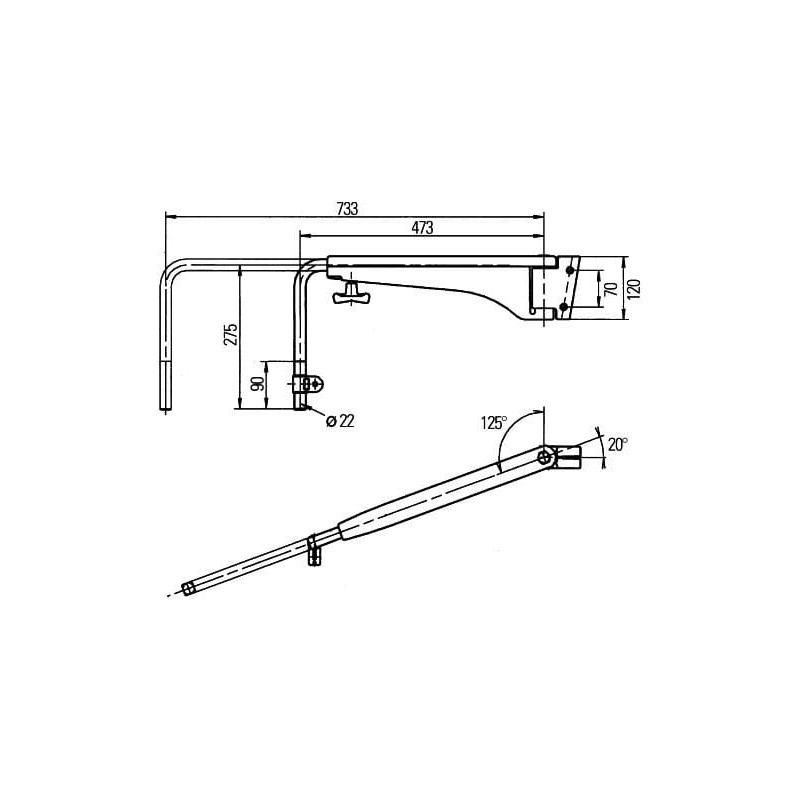 Maksimalus rankos ilgis 733 mm