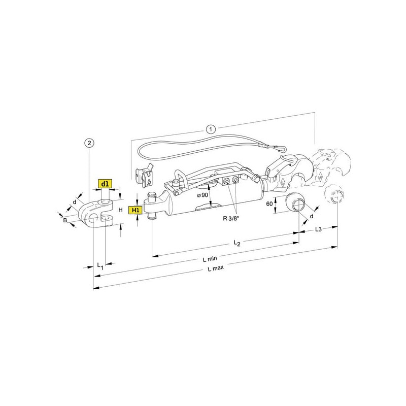 Hidraulinė viršutinė svirtis, kablys su rutuliniu kat.3, Ø90 mm 309539