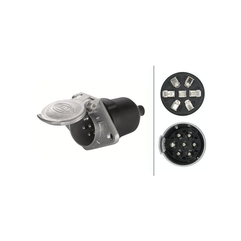 Ilgas aprašymas 7 kontaktų lizdų skydelis, įleidžiamas metalinis Hella
