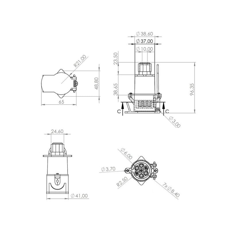 Ilgas aprašymas7 kontaktų jungiamasis lizdas