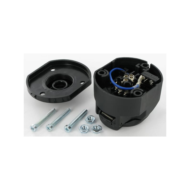 Savybės Lizdas su sraigtiniu jungtimi pagal DIN ISO 11446 Korpusas pagamintas iš juodo plastiko Atlaikomoji galia: 20 A prie 12 V