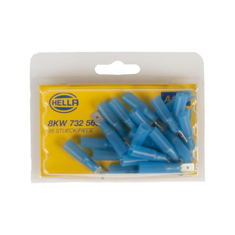 Gnybtų mentė vyriška, mėlyna, 1,5–2,5 mm² 6,3 x 0,8 mm, lizdinė plokštelė (25x), Hella 8KW732569003