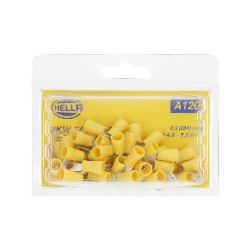 Žiedinė jungtis, Ø5mm A serija, geltona, 4-6mm² lizdinė plokštelė (50x), Hella 8KW744776003