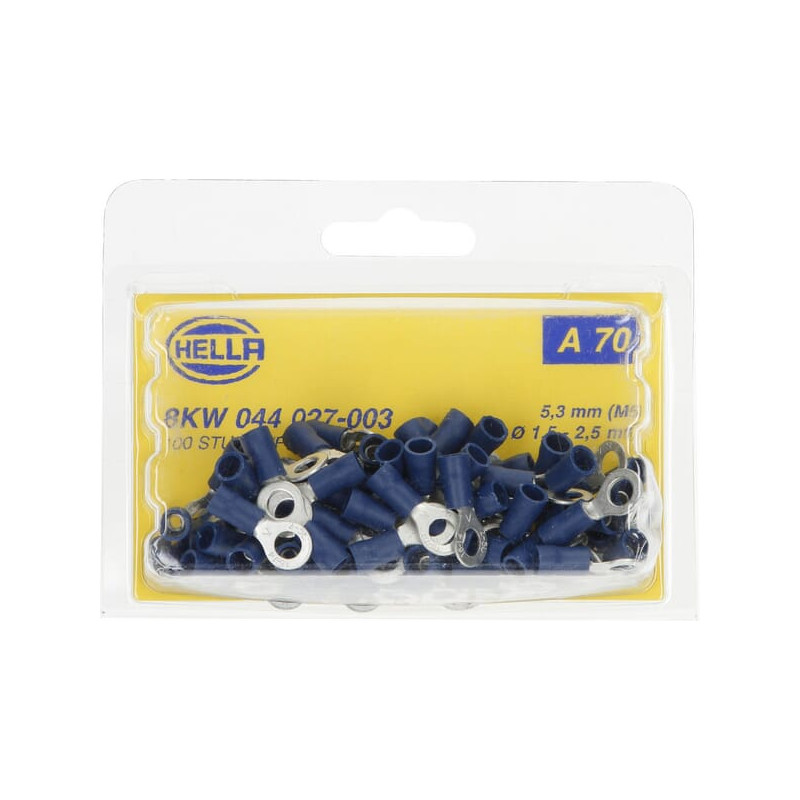 Žiedinė jungtis, mėlyna, 1,5–2,5 mm² Ø5,3 mm, A serija, lizdinė plokštelė (100x), Hella 8KW044027003
