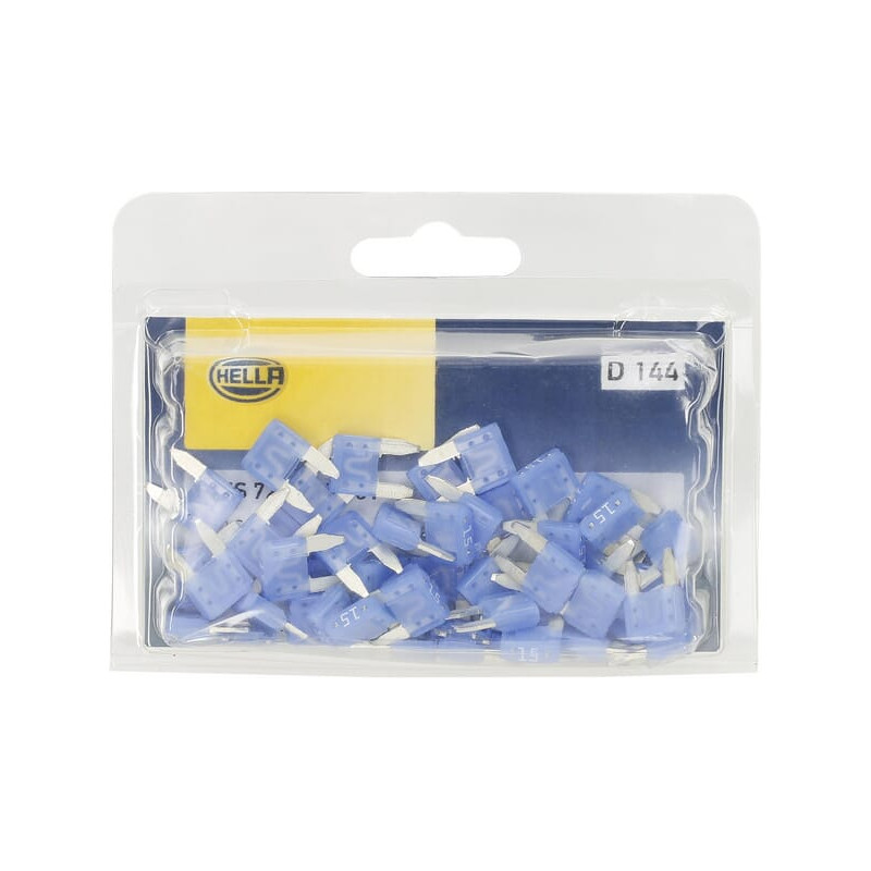 Saugiklio mini mentė 15A ilgis 10,9 mm mėlyna pakuotė 50x Hella 8JS728596151