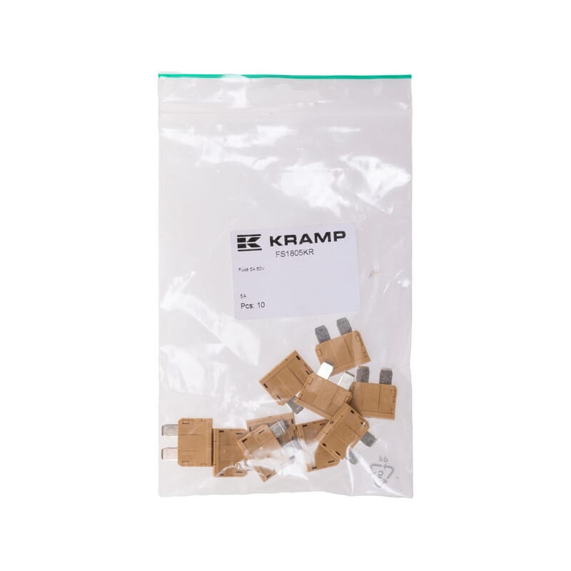 Saugiklio standartinė mentė 80V 5A įdegio pakuotė 10x Kramp FS1805KR