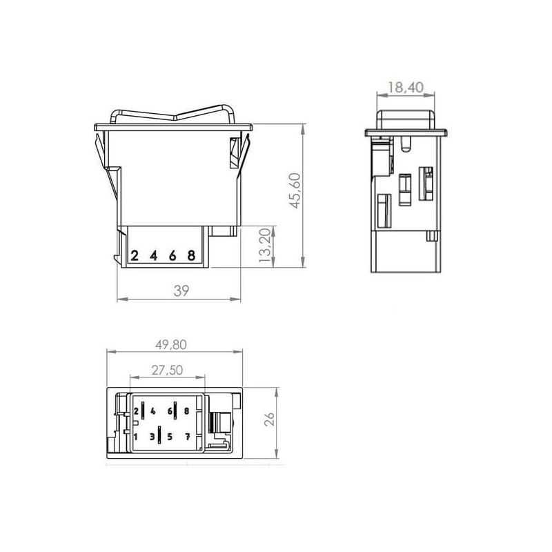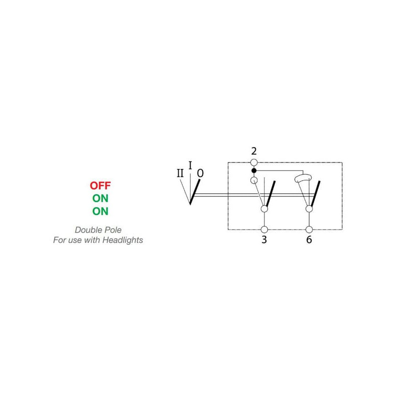 Svirtis jungiklis, II+I-0, išjungtas ir įjungtas, 12/24V, 5 kontaktų, funkcinis apšvietimas, su lempute SW10033KR