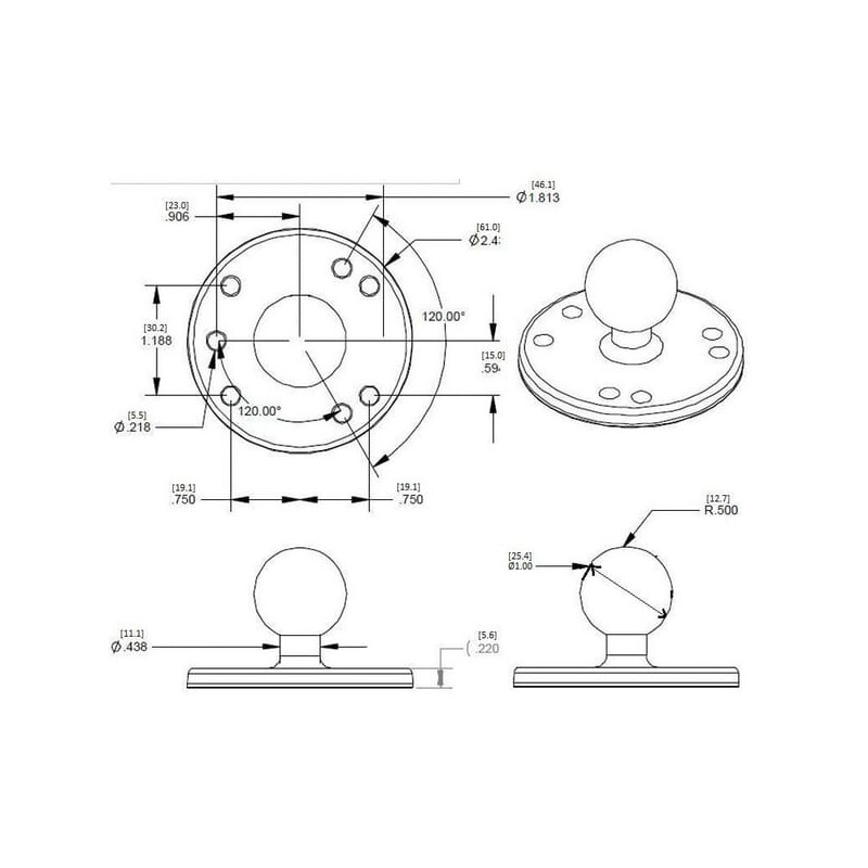 Išsami informacija apie gaminį RAM B rutulio skersmuo: 1'' (25,4 mm) Didžiausia leistina apkrova: 1,5 kg Tvirtai susidėvėjusios dengtos aliuminio dalys.