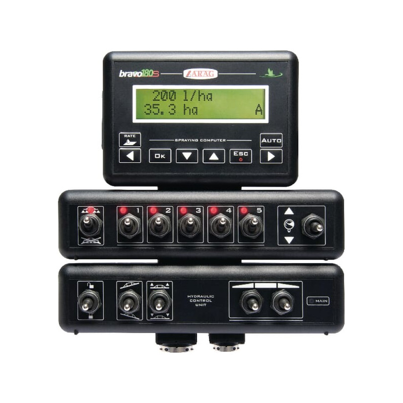 Ilgas aprašymasBravo 180 yra purškimo kompiuteris, skirtas specialiai pasėlių purkštuvams. Nustatykite reikiamą dozę ir kompiuteris automatiškai dozuos pagal važiavimo greitį. Tai kompaktiškas ir lengvas purškiamas kompiuteris su daugybe galimybių. Galima rinktis tarp ilgo arba trumpo purškimo meniu ir rankinio arba automatinio purškimo valdymo. Be to, šiuo purškimo kompiuteriu galima valdyti ir putų žymeklį. Kompiuteryje galima nustatyti purškimo strėlę, rato konstantą, ratų pasirinkimą, kalbą, srauto konstantą, slėgio jutiklį ir iki 5 sekcijų. Monitorius rodo važiavimo greitį, slėgį, padengtą plotą, išpurkšto skysčio kiekį, bako lygį, debitą, atstumą, laiką ir lauko numerį.