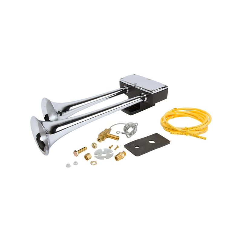 Papildoma informacija Dvigubas garsas, juodas korpusas, vamzdeliai, dalys, rankinis diržo vožtuvas Reikalingas: Oro slėgio tiekimas 4bar - 8bar (60 - 120 psi) Maitinamas: oro kompresoriumi (išskyrus) Sriegis 7/16-24 UNS