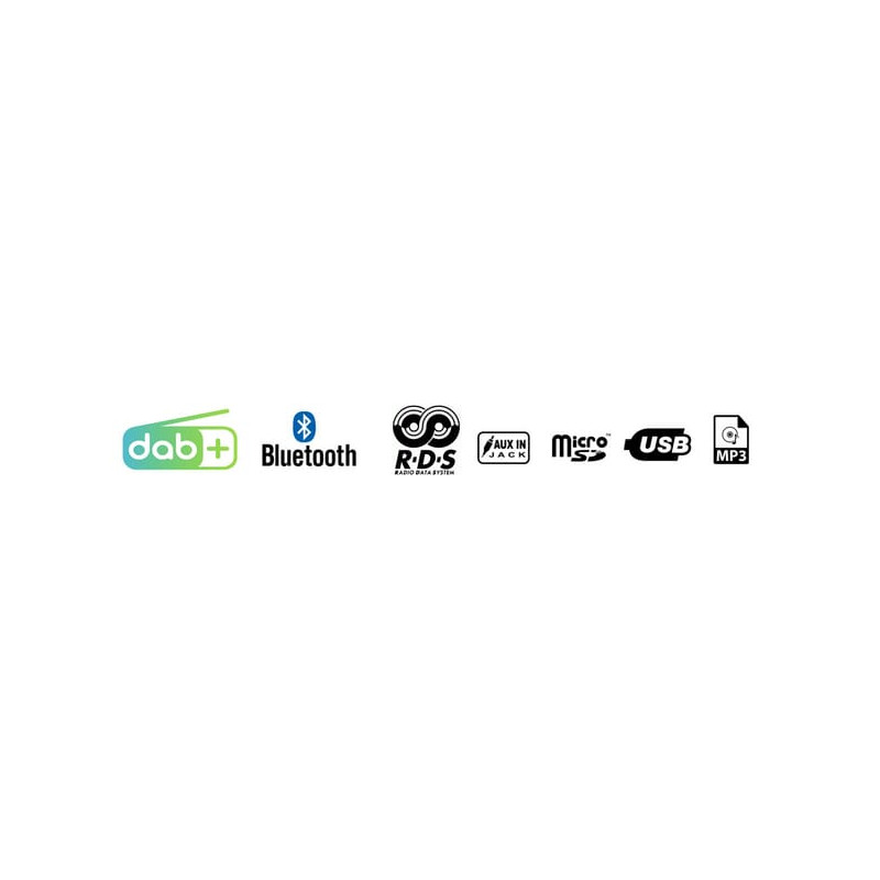 Ilgas aprašymasRadijas su DAB+, FM imtuvu ir 18 išankstinių nustatymų, atkuria USB ir SD kortelę (maks. 32Gb) ir Bluetooth