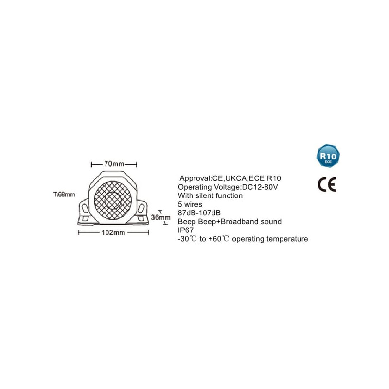 Atsarginis atbulinės eigos signalas kelių triukšmų 12-80V (pypsėjimas + baltas triukšmas) LA80501
