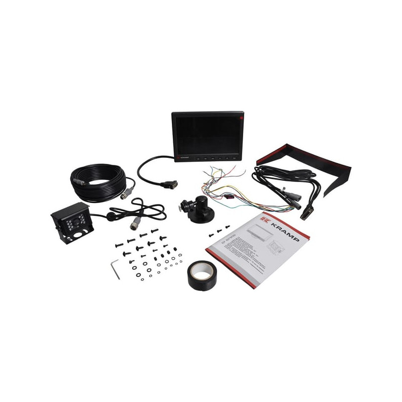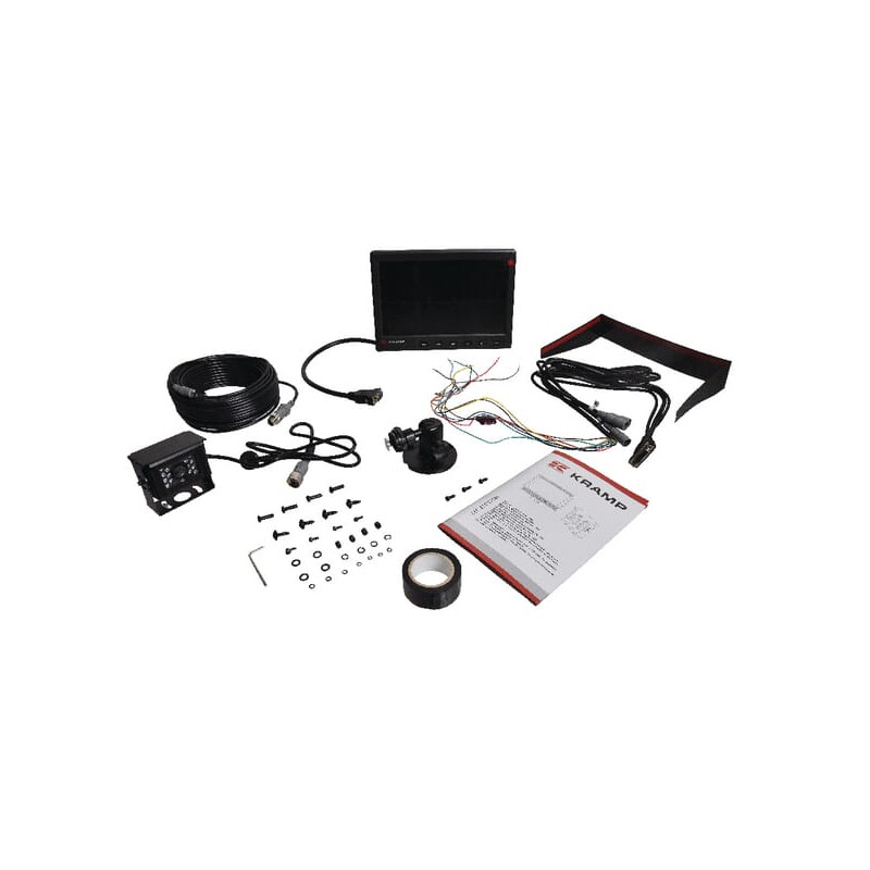 Susideda iš monitoriaus Jungiamasis kabelis: 20 m 90° kamera Monitoriaus prijungimo laidas Tvirtinimo elementas Montavimo atrama
