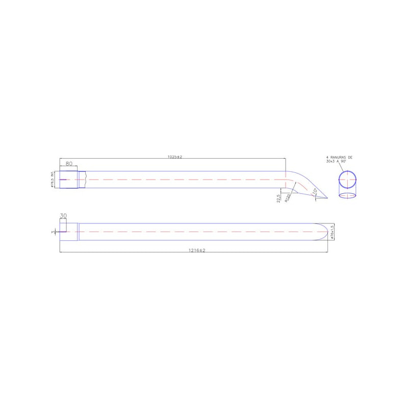 Chromuotas išmetimo vamzdis, 76 mm EX960004
