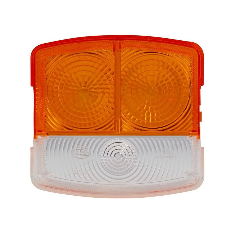Case - IH 633 9EL134742021 Šviesus lęšis, gintaro spalvos/skaidrus, kvadratinis dešinysis Hella