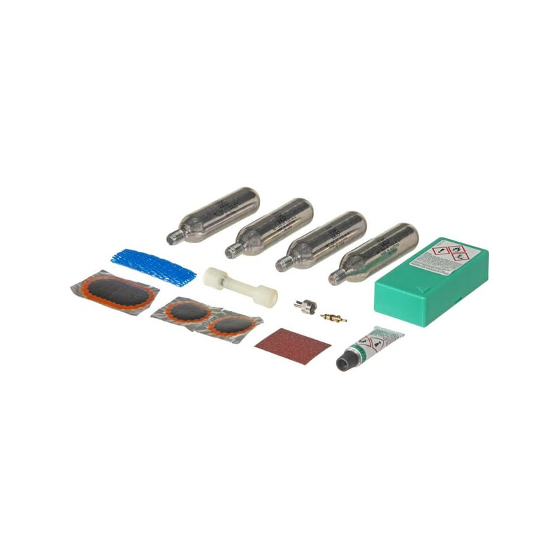 Susideda iš 2x vidinio juostinio tinko 0 dydžio, 1x vidinio juostinio tinko 7 dydžio, 1x SVS-Vulcanizer vamzdelio 3 gramų, 1x švitrinio popieriaus, 1x automobilio vožtuvo trumpo, 1x vožtuvo dangtelio su šakute, 4x 16 gramų kasečių, 1x kasetės nenaudojamo adapterio, 1 kasetės rankinio apsauginio adapterio arba 1 kasetės.