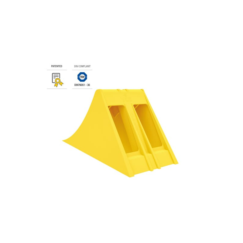Išsami informacija apie gaminįDviejų ašių transporto priemonėms primygtinai rekomenduojama naudoti dvi trinkeles. Tinka motorinėms transporto priemonėms, priekaboms ir puspriekabėms Maksimali naudingoji apkrova 6500 kg (ašies apkrova 13000 kg) Idealiai tinka motorinėms transporto priemonėms, priekaboms ir puspriekabėms