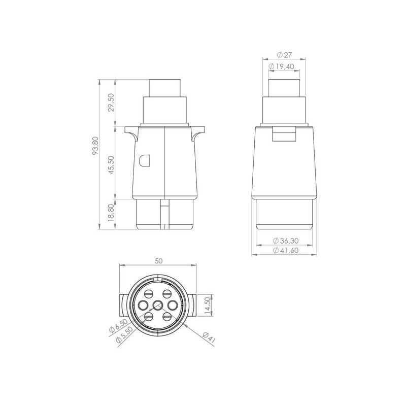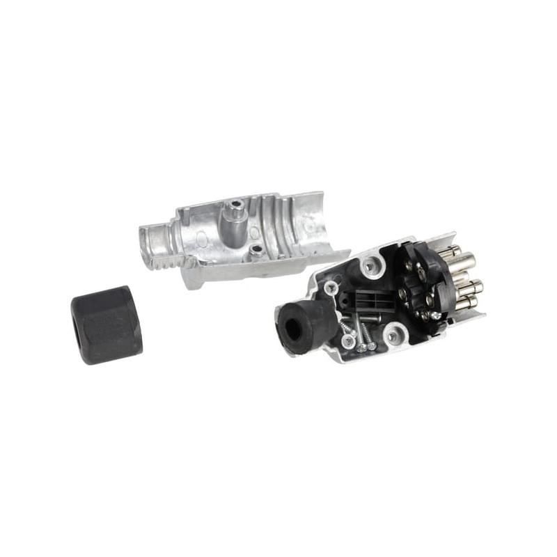 Detalės 7 kontaktų metalinis priekabos kištukas, tinkamas 12 V sistemų įtempių mažinimui pagal DIN ISO 1724